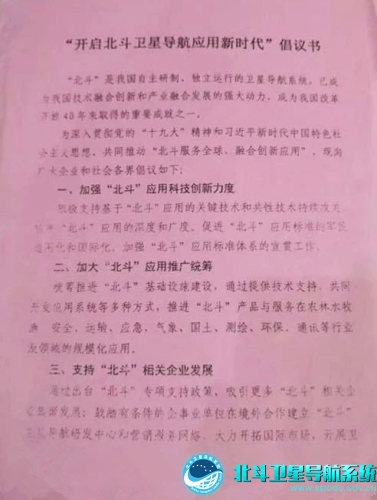 为深入贯彻党的十九大精神和习近平新时代中国特色社会主义思想、共同推动“北斗服务全球,融合创新应用”,现向广大企业和社会各界倡议如下: